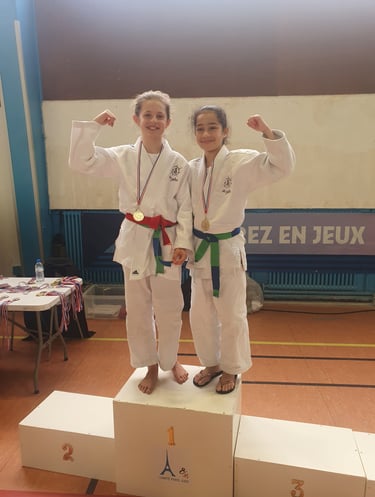 Le dimanche ce fut au tour des filles: Anna remporte 2 très beaux combats sur les 3 de sa poule, mais ne passe pas en tableau au nombre de points marqués, c'est très dur ! Aliénor effectue deux superbes combats et passe proche de la victoire. Elle a montré de beaux progrès 👍!! Enfin Feryel et Agathe deviennent championnes de Paris et représenteront le club aux Championnat Ile-de-France en mai !! on compte sur vous les filles 💪 !!!